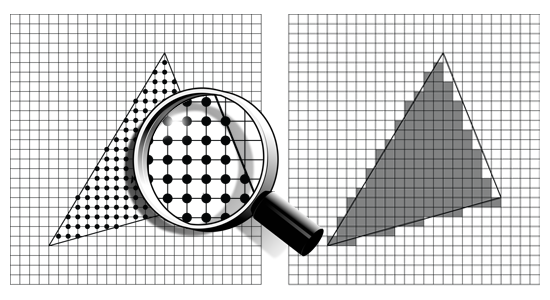 Het vertalen van een polygoon naar pixels wordt scanconversie of rasterization genoemd.
