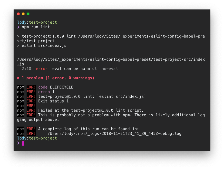 En dat is het. We hebben nu een eigen project gemaakt dat onze eigen ESLint en Babel configuratie (of preset) gebruikt op de source code. Wil je de voorbeeldcode in actie zien? Dan kan je het altijd terugvinden op Github.